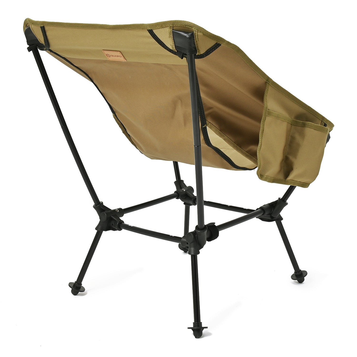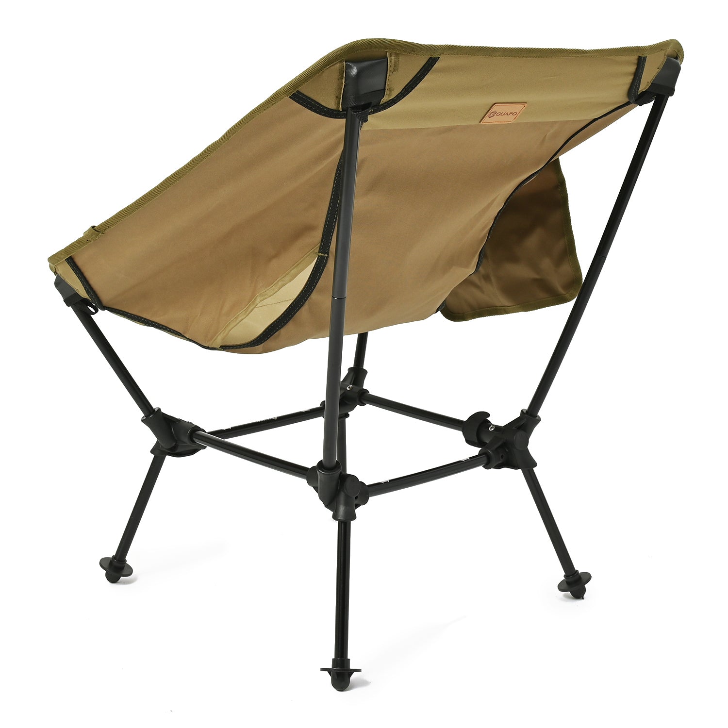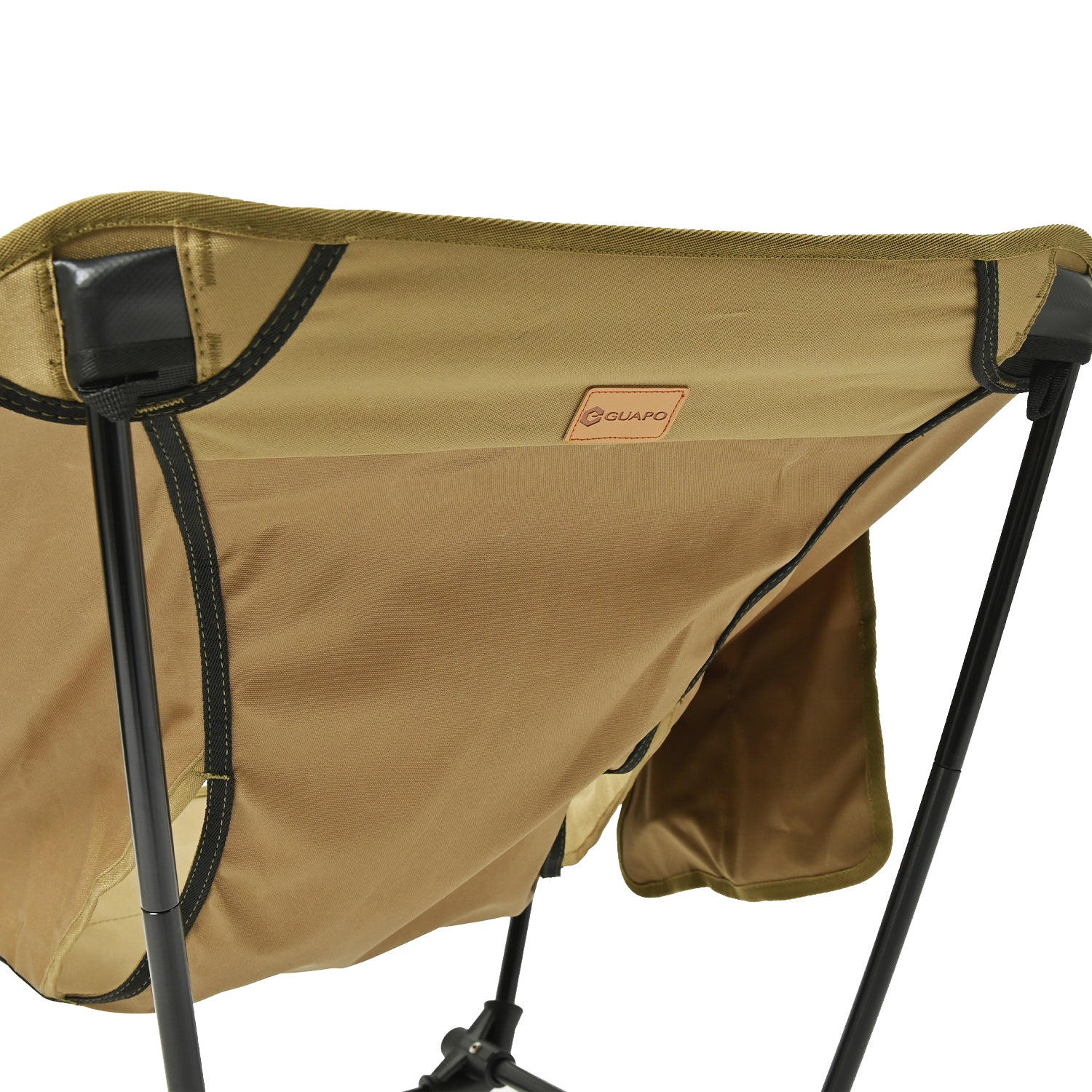 従来の同タイプの アウトドアチェア では、座った時の太股(ふともも)部分の幅が48〜50cm程度で、特に男性が座ると少し窮屈感がありました。 少しでもゆとりをもって快適にお過ごしいただけるように、GUAPO キャンプチェア は 「◎太もも部分の幅 → 約55cm」「◎背中部分の幅 → 約56cm」とゆとりをもったサイズ感でゆったり座れます。