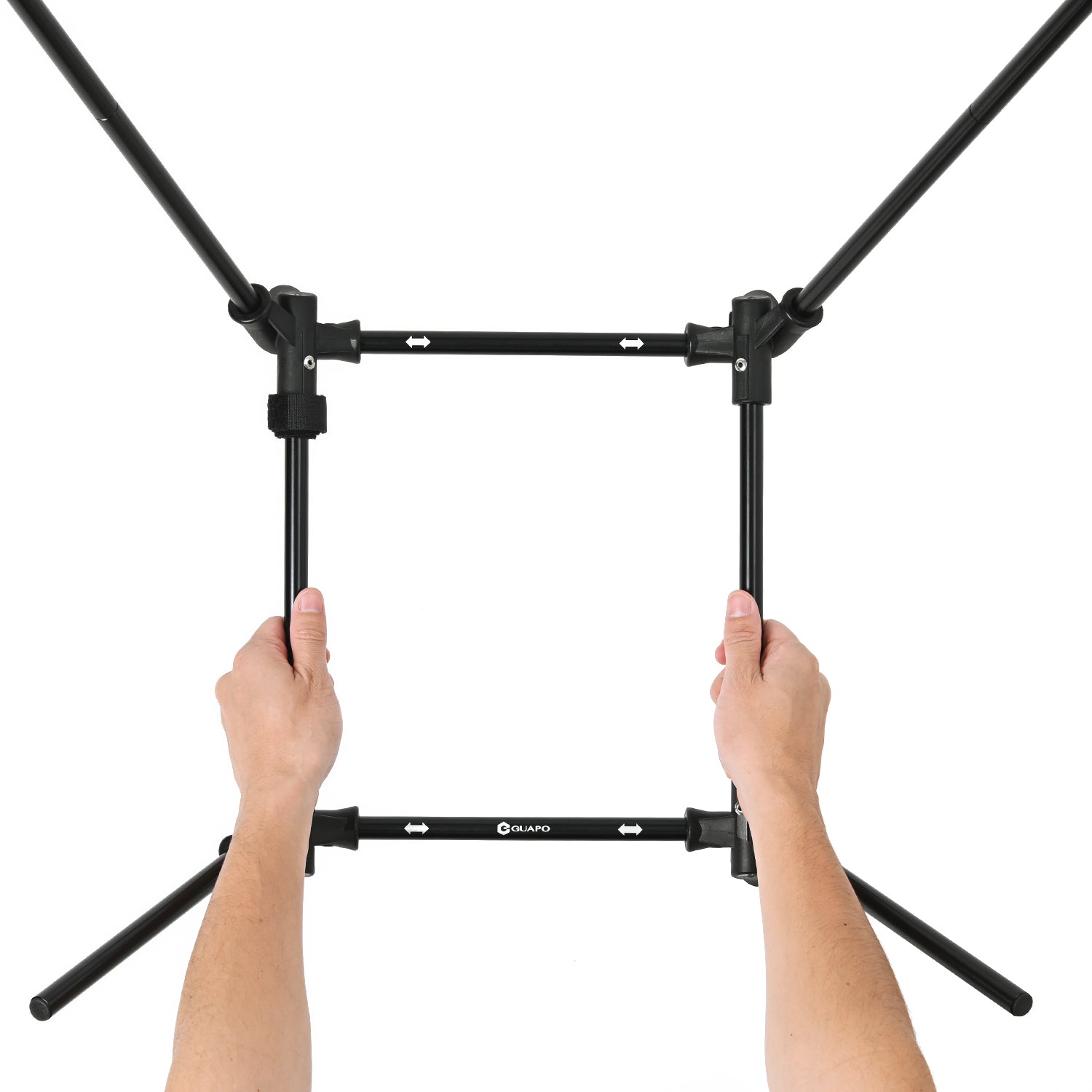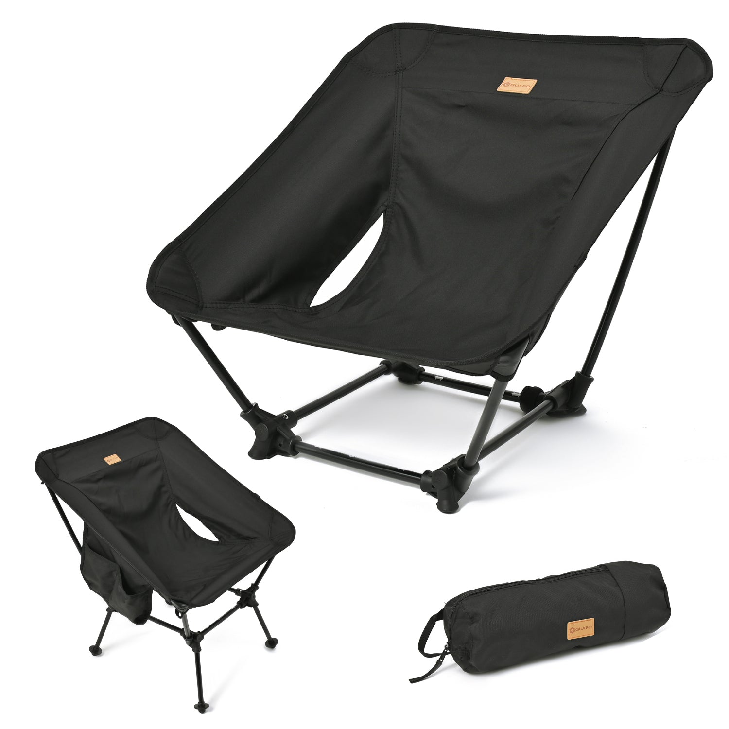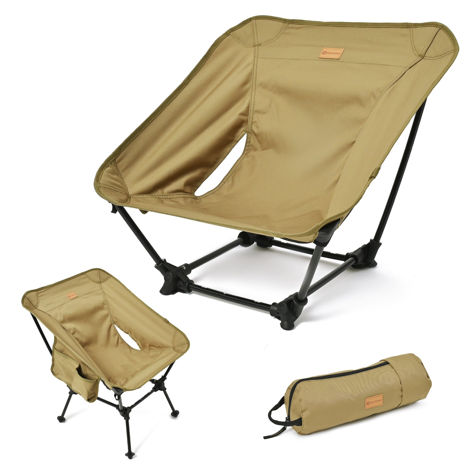 従来の同タイプの アウトドアチェア では、座った時の太股(ふともも)部分の幅が48〜50cm程度で、特に男性が座ると少し窮屈感がありました。 少しでもゆとりをもって快適にお過ごしいただけるように、GUAPO キャンプチェア は 「◎太もも部分の幅 → 約55cm」「◎背中部分の幅 → 約56cm」とゆとりをもったサイズ感でゆったり座れます。