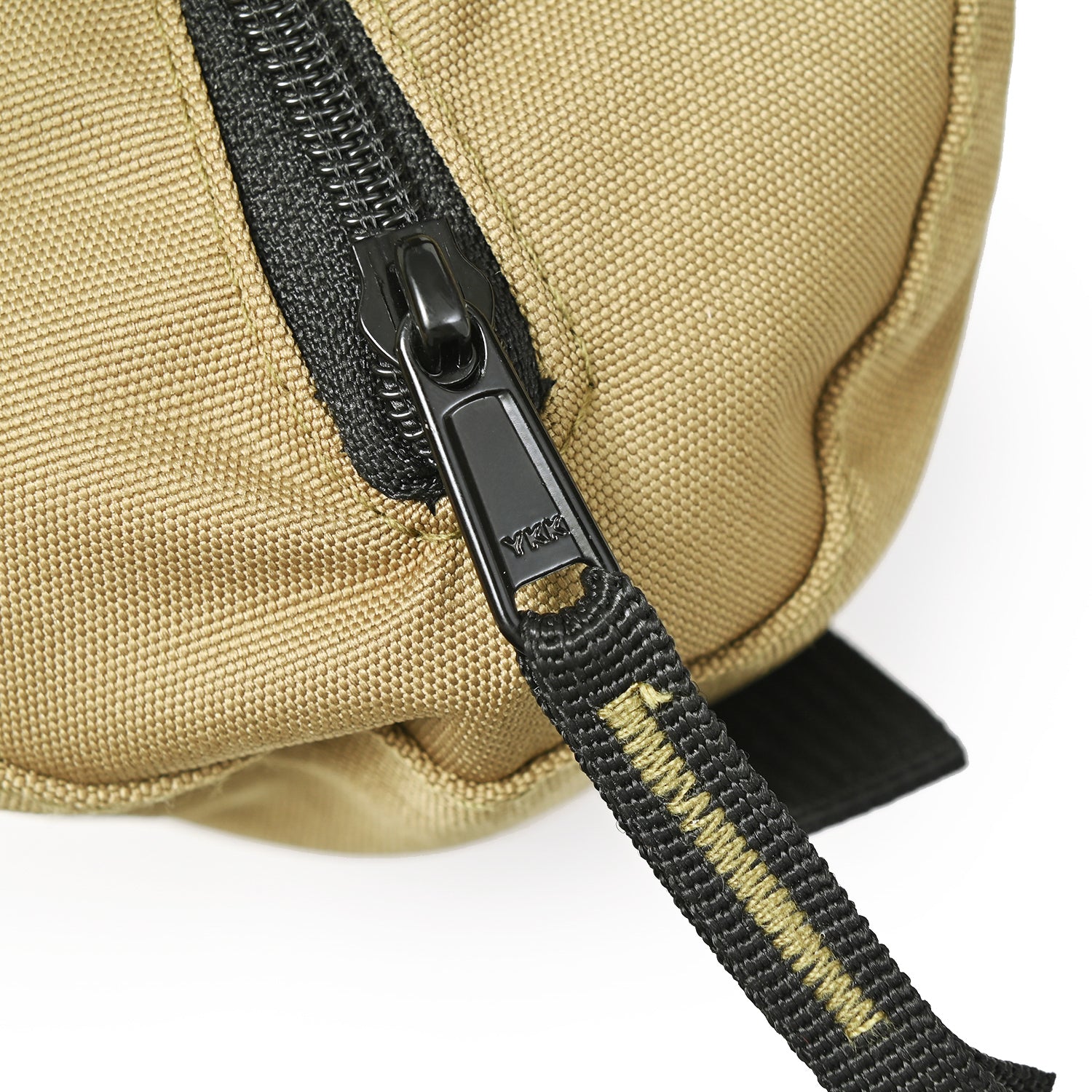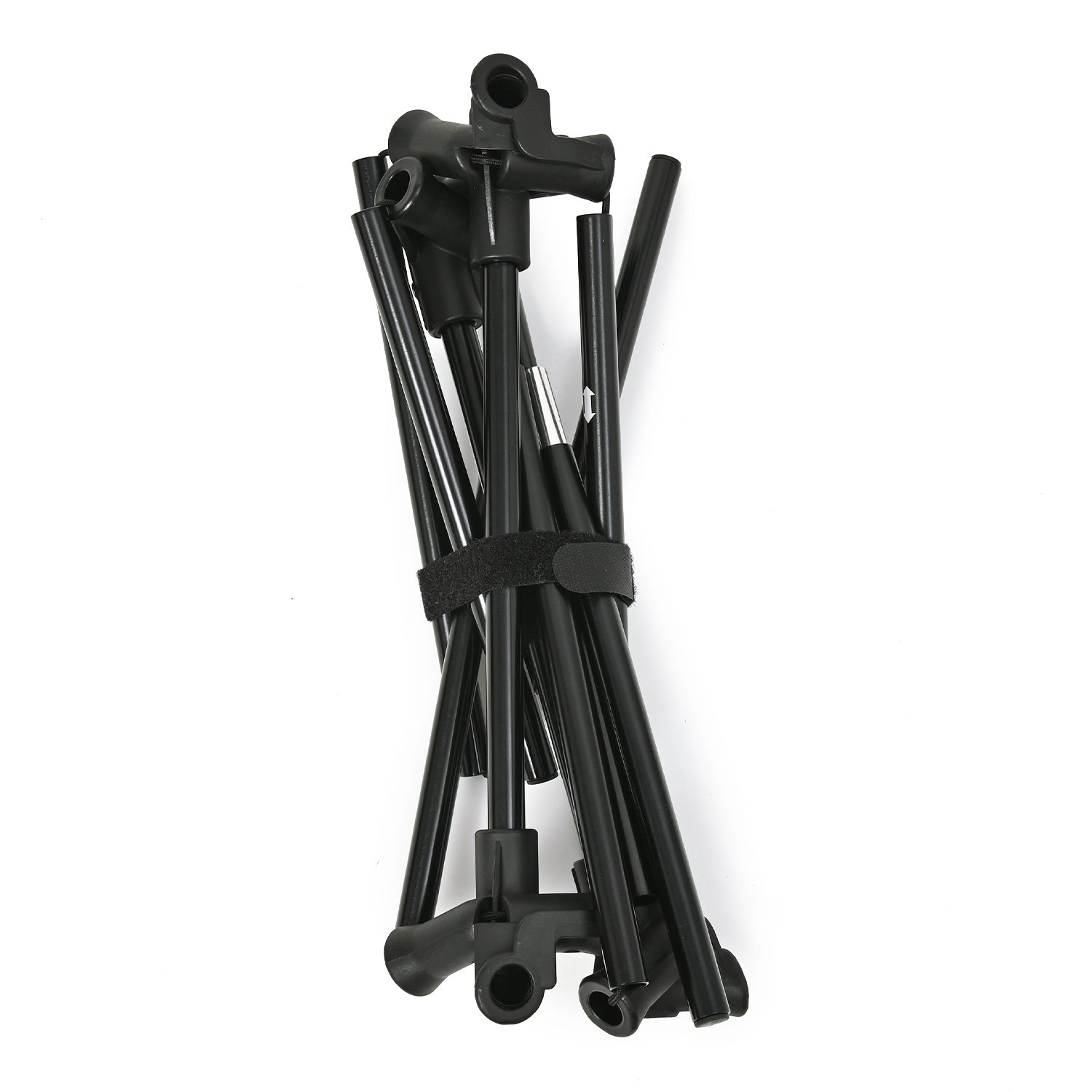 このタイプの キャンプチェア はフレームを座面シートのフレームポケットに差し込む時に力が必要です。各ポケットには座面シートを引っ張ってポケットに入れやすくするためのループ付きで、女性でも組み立てやすい配慮をいたしました。 支柱部の抜抜き差しできるフレームだけに矢印(↔)を印刷することで視覚的にもわかりやすくし、固定されているフレームを無理やり抜こうとして破損することを防ぐ効果もあり、またフレームの収納もスムーズになり速やかな撤収にもつながります。