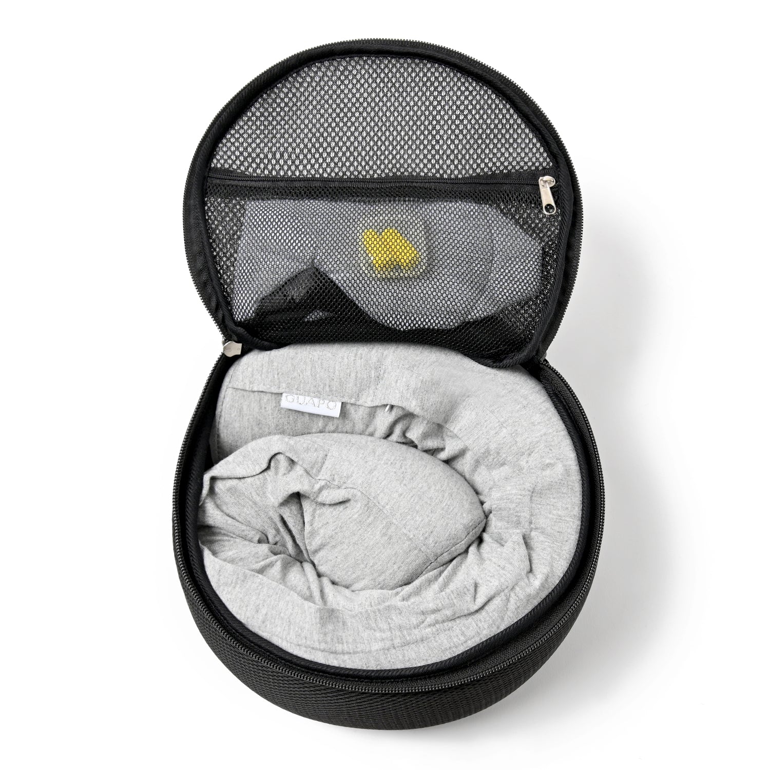 クッションの素材、クッションの反発具合は寝入りやすさを大きく左右し、睡眠の質に直結する大切な部分です。首や頭に優しい低反発メモリーフォームを採用し、適度な沈み込みで360度頭部と首をしっかり支えます。肩と背骨等への負担を効果的に減少させ、気持ちよくリラックスしていただけます。 GUAPOの携帯枕は、旅行や旅先、ビジネスでの出張、プライベートでの移動など、様々なシーンでご使用いただくことを想定し、最適なクッション素材を厳選し、採用しています。